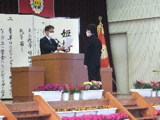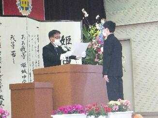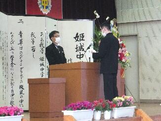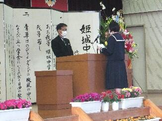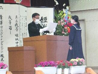 第74代姫城中学校生徒会の役員としての重みを感じながら,任命証を受け取っていました。