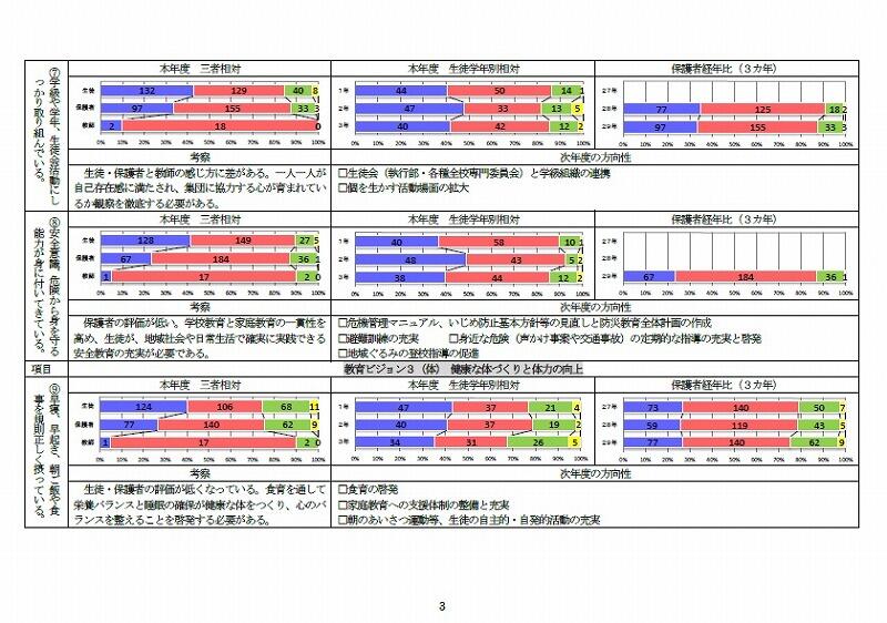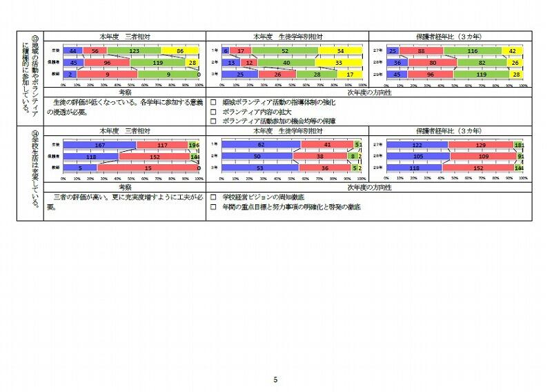 よい学校生活を送るために検討してほしいこと」「姫城中をよりよくするための努力点・