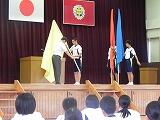 から新生徒会長へ校旗引継が行われました。新生徒会の活躍を期待をして