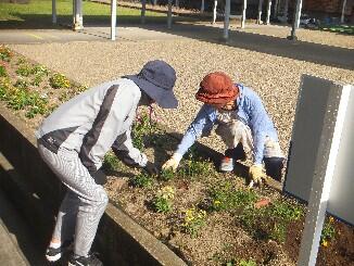 6月6日(木)、放課後、園芸部員とフラワーサポーターの方と一緒に花壇の整備をしました。ご協力していただきありがとうございました。今後もよろしくお願いします。ボランティアになりますが、フラワーサポーターを希望される方は、姫城中学校 教頭(22-4281)まで連絡ください。