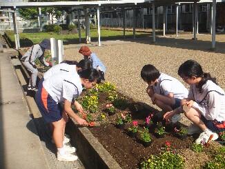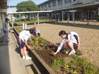 6月6日(木)、放課後、園芸部員とフラワーサポーターの方と一緒に花壇の整備をしました。ご協力していただきありがとうございました。今後もよろしくお願いします。ボランティアになりますが、フラワーサポーターを希望される方は、姫城中学校 教頭(22-4281)まで連絡ください。