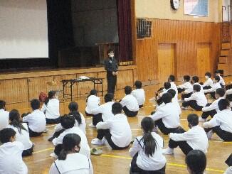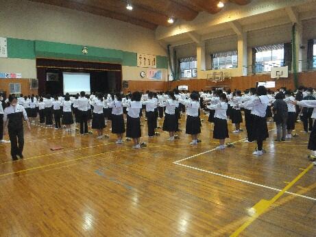 10月16日(金)6校時、1・2年生が体育館に集まり、生徒会役員や選挙管理委員長・副委員長から生徒会役員の役割や仕事内容の説明がありました。今年度、初めて2つの学年が体育館に集まりました。体育館への移動を含めた集団行動も兼ねて行いましたが、しっかりとした態度で取り組むことができました。これからもよろしくお願いいたします。