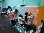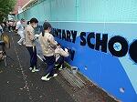 明道小学校の150周年記念壁画プロジェクトのお手伝いとして、土曜日と日曜日計60名参加しました。