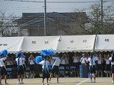 今回の大会は、3年生が引退して、初めて1、2年生で出場する公式戦となります。学校での練習などを見ていても、2年生を中心にどんどんたくましさを感じていましたが、推戴式でもしっかりとした態度で、成長したことが伝わりました。また、恒例の「姫城中応援歌」で選手のみんなを激励しました。