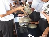 戦時中の都城の様子や市民の生活の様子を聞いたり、写真や映像を見たりして、心を動かされていました。砲弾なども手にして、その重さにも驚いていました。さらに、戦争で亡くなられた方などを遺品や手紙を見て心が痛む様子でした。