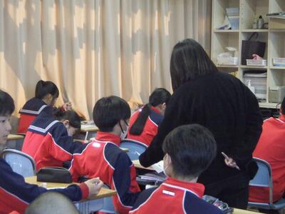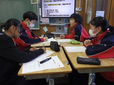 2月3日(火)の4校時に、1年2組にて髙岡教諭による学級活動の研究授業が行われました。題材は、チームでの話し合いの質を深める「NASAゲーム(コンセンサスゲーム)」です。