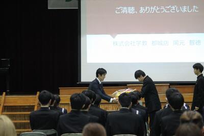 第2部では、株式会社学教都城店の岡元様を講師にお迎えし、「これからの人生、【正解】は一つじゃない ~中学2年生の今、伝えたいこと~」と題してご講演いただきました。