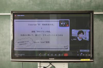 最新技術への触れ方として、生成AIを活用した「旅行計画の作成」に挑戦しました。AIの特性を理解し、主体的に使いこなすスキルの習得を目指しています。