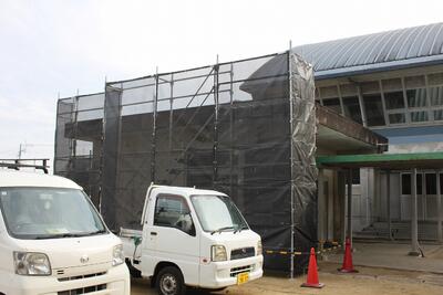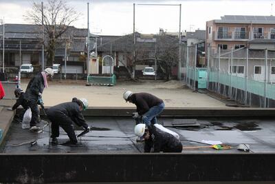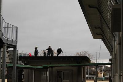 2月上旬より行われていた体育館隣接の外部トイレ屋根の防水工事ですが、このたび無事に検査が終了し、足場の撤去まで完了いたしました。