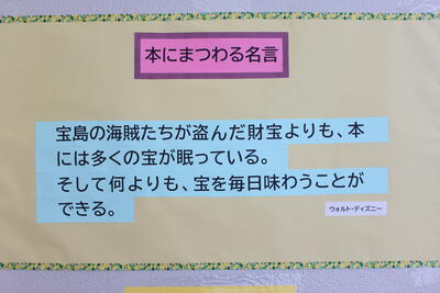 図書室前には、現在11月図書館だよりと本にまつわる名言などが掲示してあります。