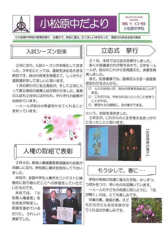まだまだコロナウイルスで心配なことも多いですが、小松原中学校全員で、今年も頑張っていきましょう。