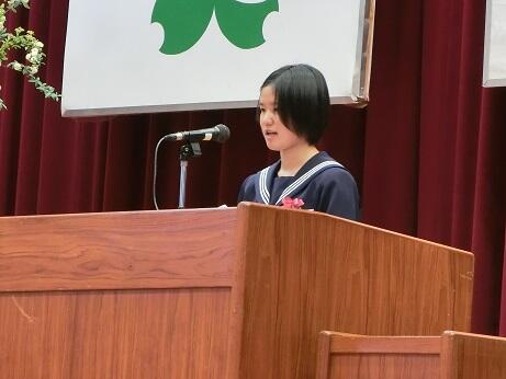 3年代表の末広さんは、部活や行事、進路について決意を述べ、最後に「この学年でよかったと思える卒業式になるようにしたい。」と話してくれました。