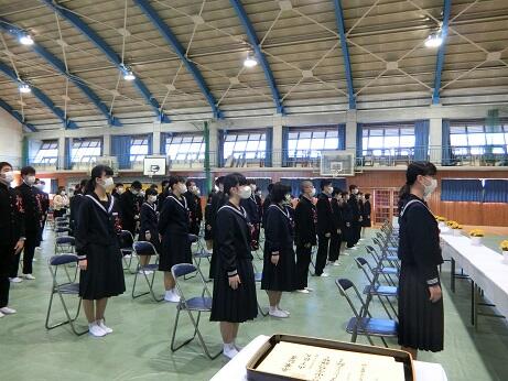 来賓や在校生のいない式でしたが、厳粛な中で執り行われました。