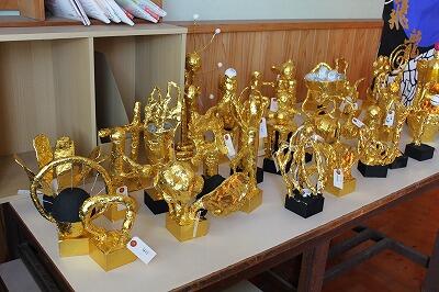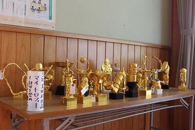3年生の美術科の作品「マイトロフィー」の紹介です。現在、北校舎の3階の渡り廊下前に展示してあります。自分を誉め称えられるものとはなんでしょうか?