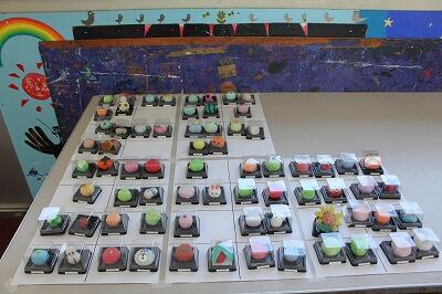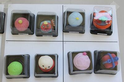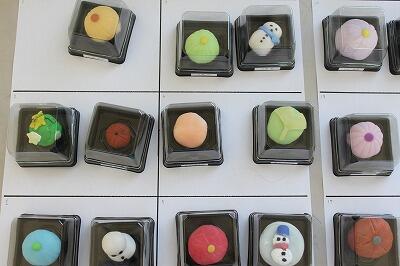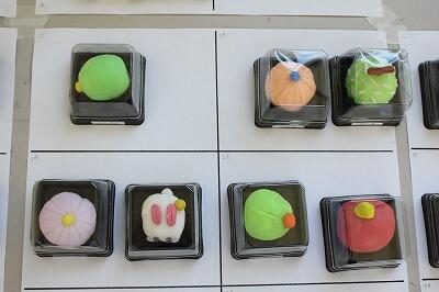 また2年生の美術科の作品「クレイ粘土で和菓子を作ろう」は、現在美術室前の廊下に展示してあります。かわいらしいものもあれば、本物の和菓子にそっくりの作品もあります。