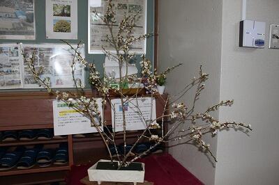 3月3日の本校玄関の様子です。本校教諭が自宅の庭から持ってこられた桃の花です。桃の節句にふさわしい風情ある玄関です。