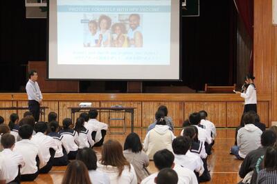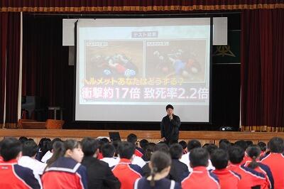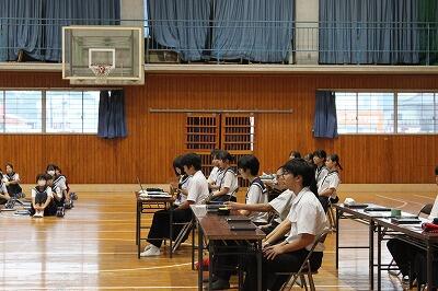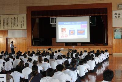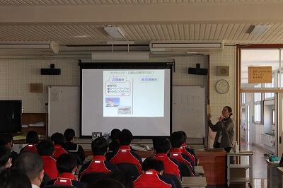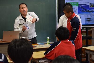11月11日(火)の6校時に、都城市・三股町合同教育研究会 技術・家庭科【技術分野】に関連した出前授業を、本校2年生全員を対象に体育館で実施しました。