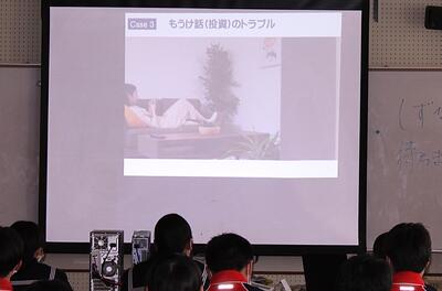 インターネット等の普及により、近年では悪質商法や特殊詐欺による被害が増大しています。中学生を取り巻く現状を学習し、被害にあわないことや未然に防ぐ方法及び対応方法を身に着ける態度を養うことをねらいとしました。