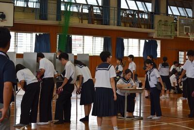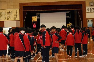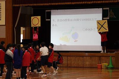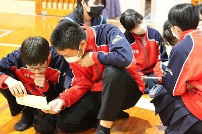 3月11日(火)に本校体育館にて、生徒会主催の全校クラスマッチが開催されました。生徒会役員が企画・運営を行い、全校生徒でじゃんけん列車、借り人競争、〇✕ゲームを行いました。3年生にとっては卒業式前最後の行事となりましたが、大変な盛り上がりとなり中学校生活のよい思い出となったのではないでしょうか。