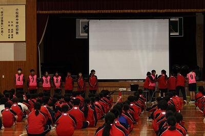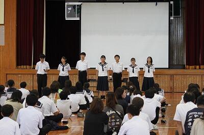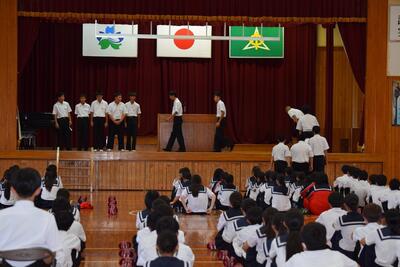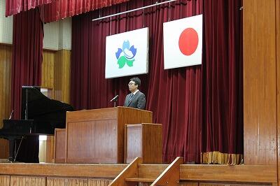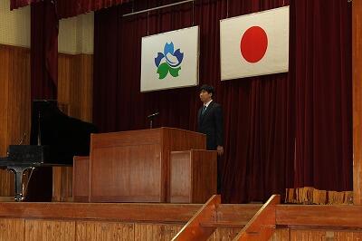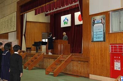 式典は2部構成で、第1部では、小学校の校長先生や旧学級担任の先生、地域の自治公民館長や民生委員児童委員、保護者の出席される中、以下の内容が行われました。