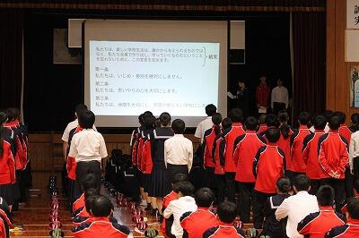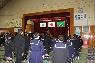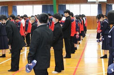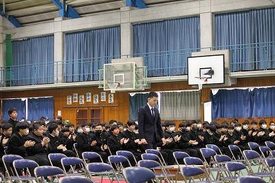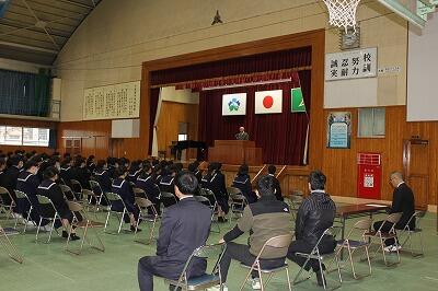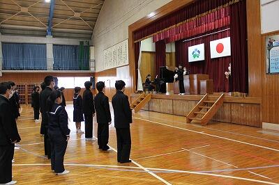 3月26日(水)に、今年度を締めくくる修了式が、1・2年生全員を体育館に集合させて行われました。