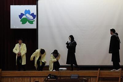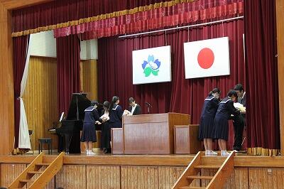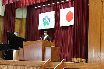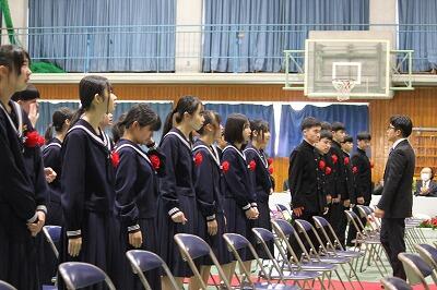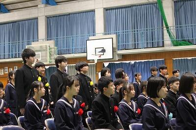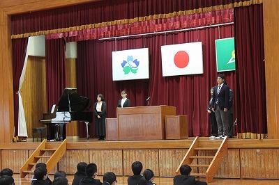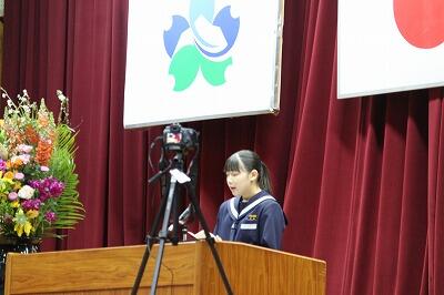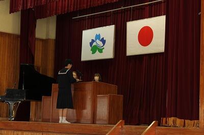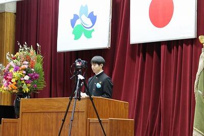 同窓会会長の中原様からお話があり、入会許可をいただいた後に、生徒代表が誓いの言葉を発表してくれました。卒業式を前にした厳粛な式となりました。