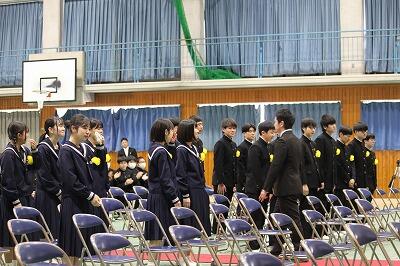 3月14日(金)に本校体育館にて、小松原中学校同窓会入会式が行われました。本校には卒業生が集う同窓会があり、第77回卒業生の同窓会への入会を許可してもらうための式といういことになります。