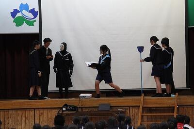 その後の修了式では、校長先生から充電期間である春休みに、心も体もリフレッシュさせ、小松原の顔として、そして新年度に入学してくる1年生の先輩として、よき見本となるための覚悟をもって臨むための準備を進めるように、というお話がありました。そして、1・2年生それぞれの代表に修了証書が授与されました。