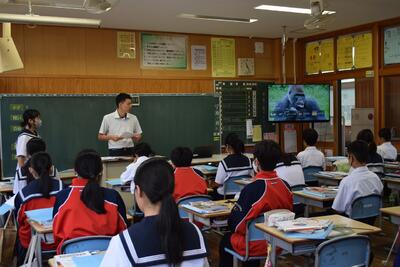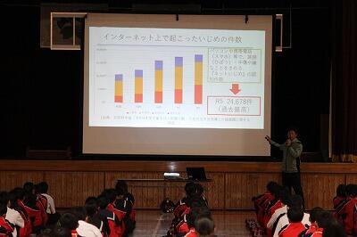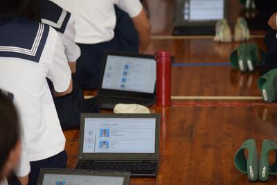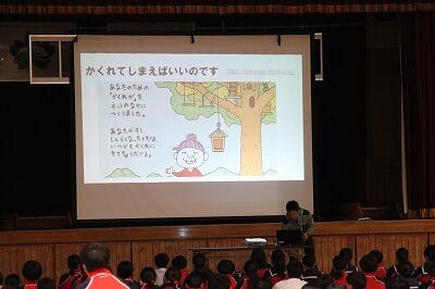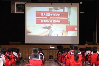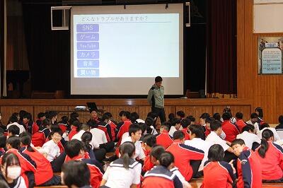 同じく12月4日(木)の6校時には、1・2年生を対象とした「情報教育の日Ⅲ」を体育館と教室で実施しました。