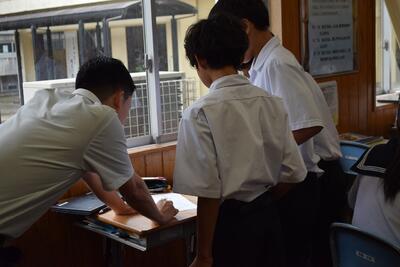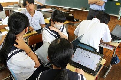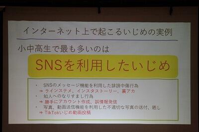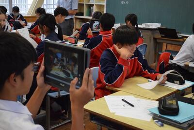 生徒たちは、写真に写った人の瞳や黒いタピオカといったわずかな情報から住所などが特定されてしまう事例を見て、SNSの持つ恐ろしさと、情報モラル・リテラシーの重要性を肌で感じ、深く学んだようでした。