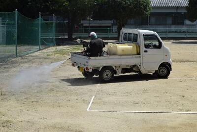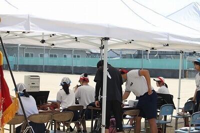 〇屋外(運動場・駐車場): 各公民館や大王小PTA、本校PTAなどの出店で使用するテント張りを協力して行い、お祭りムードを高めました。