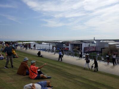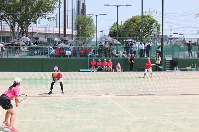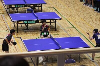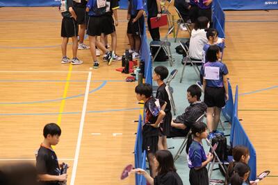 〇体育館: 観客用の椅子並べ、掲示パネルの設置、さらに、体育館が外履きで入れるよう、通常のシートの上にブルーシートを丁寧に敷く作業などを行いました。