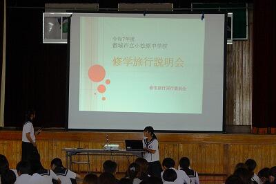 学校長のあいさつの後、生徒会三役が、プレゼンテーションソフトを活用して、生徒会の仕組みや登校してからの学校生活の流れを説明してくれました。その後、教師の担当から学校生活全般の話や生活のルールについて話がありました。また、PTA副会長からもPTA組織の在り方や考え方のお話がありました。6年生の児童の皆さんは、先輩である現中学生の授業参観もしました。最後に、制服をはじめシューズやヘルメットなどの採寸をして終了しました。児童の皆さんは大変真剣な態度で説明を聞いていました。来年度入学してくるのが大変楽しみです。