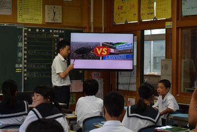 今回の出前授業では、「新福青果の栗原様」を講師にお迎えし、宮崎県の農産業と、情報の技術を活用した農業(スマート農業)についてご講演いただきました。
