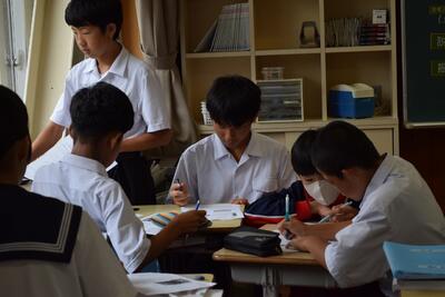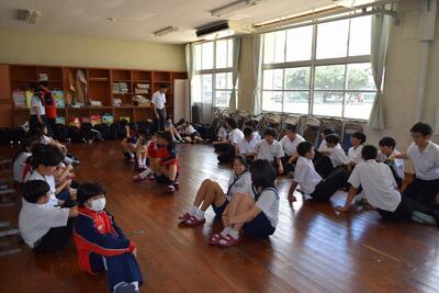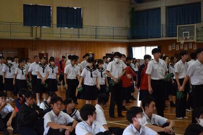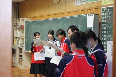 事前指導終了間際に、2年生がサプライズで、3年生の入試にむけての応援メッセージとエールを送ってくれました。また3年生も、応援へのお礼としてエールのお返しをするなど、先輩・後輩お互いの絆を確認できる場面も見られました。