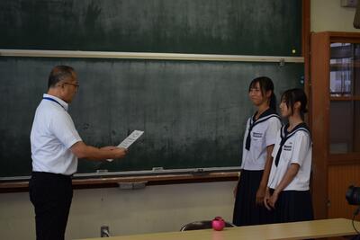 12月1日(月)、本校の校長室にて、中学生の「税についての作文」表彰式が開催されました。