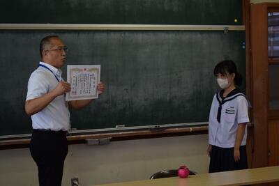 今回は、以下の主催による作文コンクールで優秀な成績を収めた4名の生徒が表彰されました。