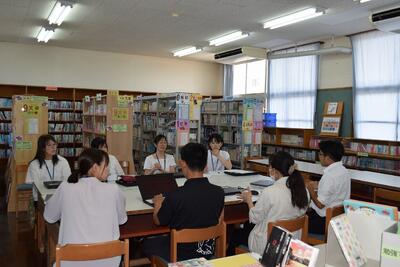 毎週火曜日の昼の放送では、図書館サポーターの山下次代さんが、絵本などの読み聞かせをして頂いています。山下さんは、長年ライフワークの一つとして読み聞かせの活動をされてきただけあって、とても読み方が上手で、思わず聞き入ってしまいます。毎週、火曜日の放送が楽しみです。また、新刊の紹介や読書の魅力についてもお話しして頂いています。
