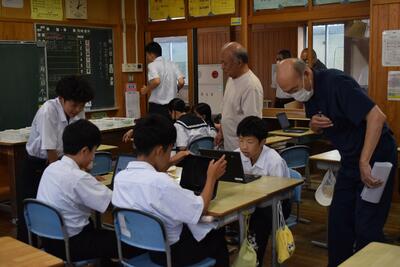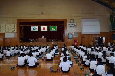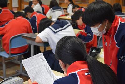 この度は、12月1日(月)から12月5日(金)の期間に実施いたしました「オープンスクール」にご来校いただき、誠にありがとうございました。この期間を学校公開週間とし、通常の時間割りや校時程をご覧いただきながら、ご自由にご希望の授業や生徒の学校生活の様子をご参観いただく機会といたしました。保護者の皆様をはじめ、学校運営協議員、各地区自治公民館長、民生委員・児童委員の皆様など、多くの地域住民の皆様にもご参観いただき、心より感謝申し上げます。