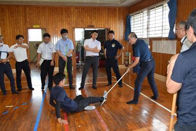 〇体育館での一斉学習: 投稿写真から特定される個人情報について、全体で学習しました。