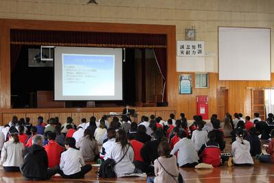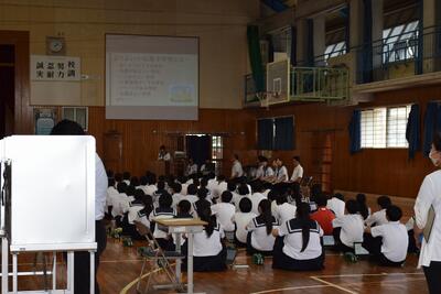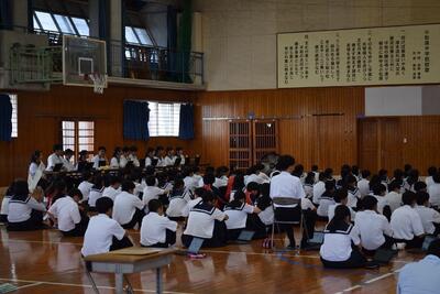 1月30日(木)の5校時に、体育館にて新入生説明会が行われました。大王小学校6年生の児童と保護者が、参加してくださいました。