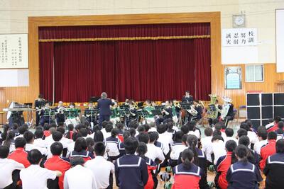 11月6日(木)の5・6校時、本校体育館にて、宮崎県警察音楽隊の皆さんによる「鑑賞教室」を実施しました。迫力ある生演奏を間近で鑑賞できる貴重な機会として、生徒たちは音楽の持つ力と素晴らしさを存分に味わうことができました。