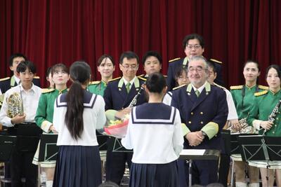 楽団員の中には、本校の卒業生や、日頃から生徒を見守ってくださっている上町交番勤務の警察官の方もおられました。そのため、大変親密感のある、温かい雰囲気の中での演奏会となり、音楽を身近に感じることができました。