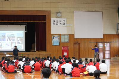 同じく12月4日(木)の6校時には、1・2年生を対象とした「情報教育の日Ⅲ」を体育館と教室で実施しました。