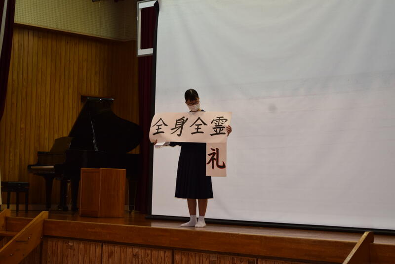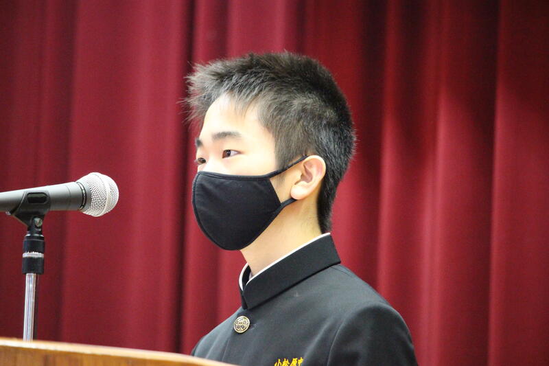 終業式では、各学年の代表生徒が2学期を振り返っての反省を発表しました。各学年の立場での視点で自分たちの学校生活を振り返っていました。また、改善が必要な部分については具体案を示しながら考えを述べているなど、とても質の高い内容で大変感心しました。