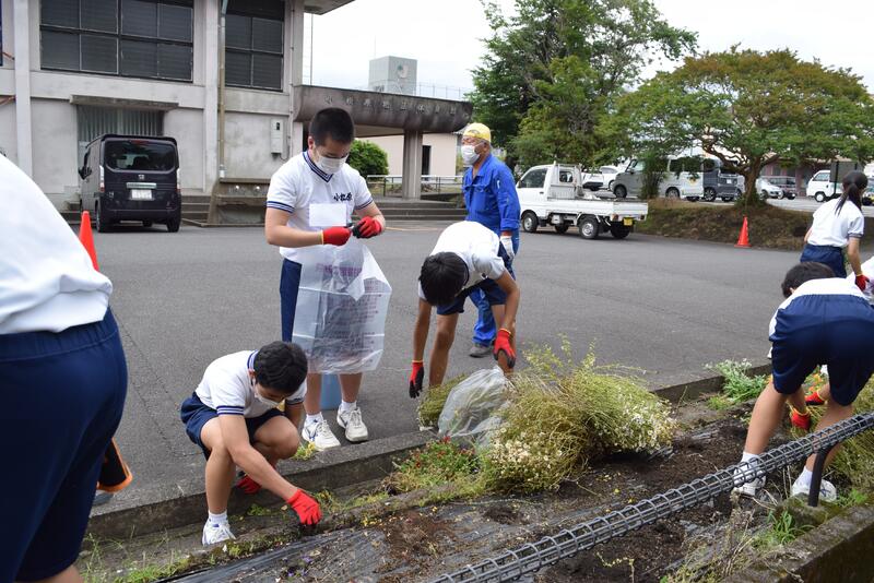 現在、月・水・金の朝には、大変寒い中ですが、生徒たちは自主的にボランティアで校庭の落ち葉はわきなどの清掃活動を行っています。常時30名程度が活動しています。奉仕的精神のある生徒が多く感心しています。