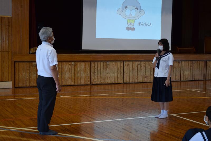 午後には対面式を行いました。1年生が入学して、生徒会活動や部活動についてよく理解してもらうために、生徒会が中心になって説明を行いました。