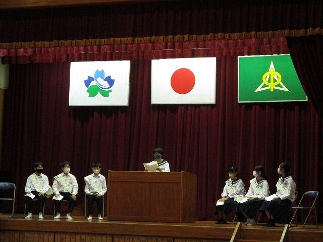 在校生代表の3年生が歓迎の言葉を述べ、わからないことは先輩に聞きながら、自分でできることを頑張って、早く中学校生活に慣れてくださいと伝えました。
