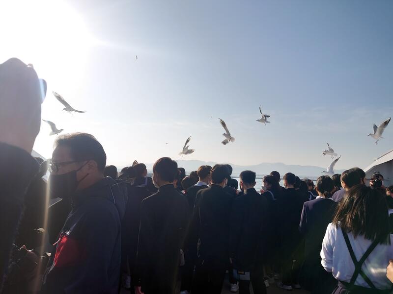 熊本港からフェリーに乗りました。カモメが歓迎してくれています。