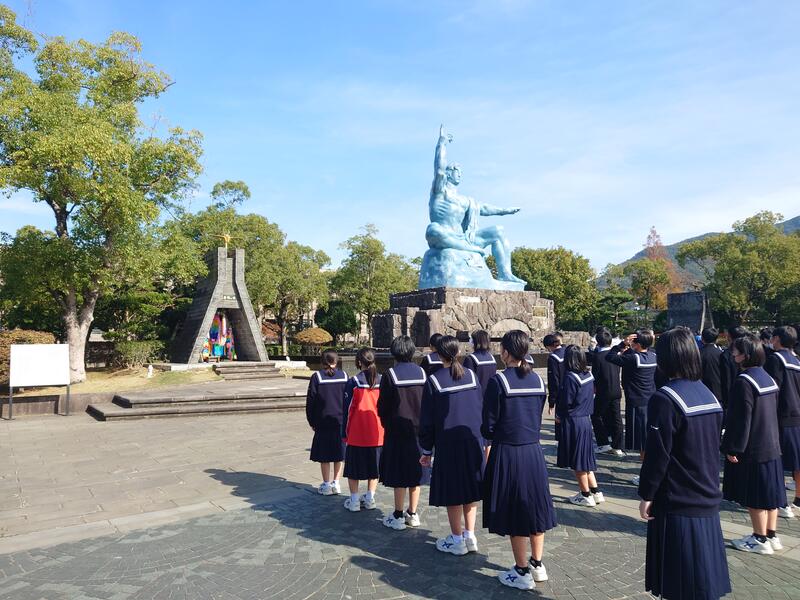 一日目は長崎で平和の集いと平和祈念公園や原爆資料館の見学をしました。世界の平和を心から祈りました。